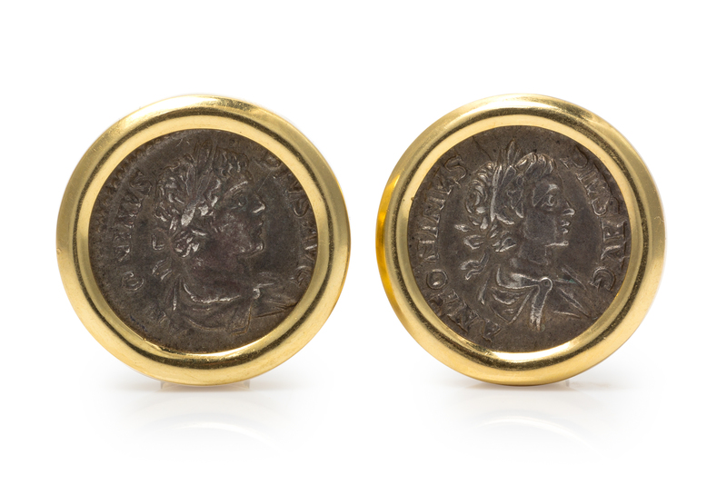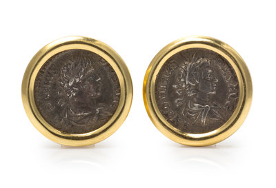 A Pair of 18 Karat Yellow Gold and Ancient Coin Earclips,