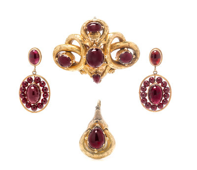 A Collection of Yellow Gold and Garnet Jewelry,