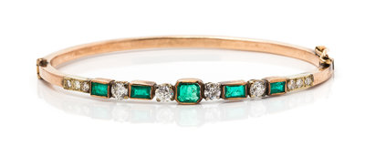 A Rose Gold, Diamond and Emerald Bangle,