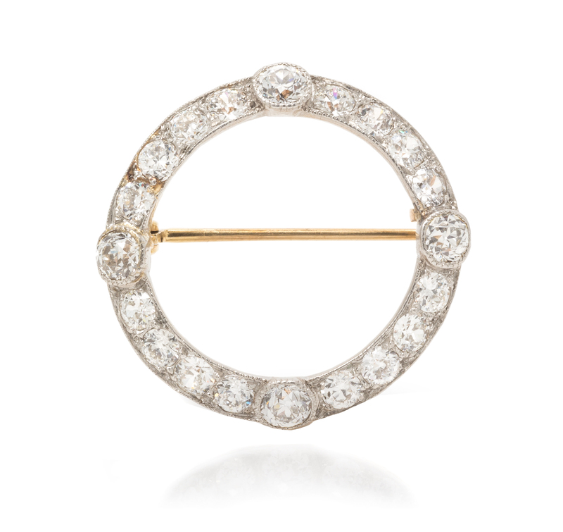 An Edwardian Platinum Topped Gold and Diamond Circle Brooch,