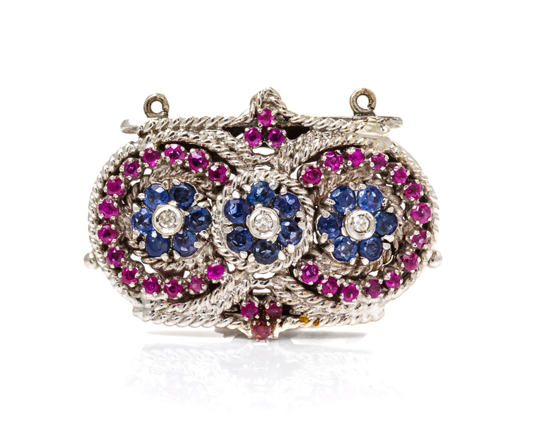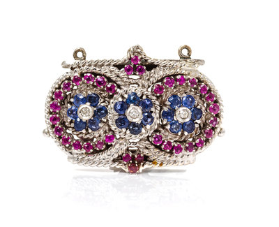 An 18 Karat White Gold, Sapphire, Ruby and Diamond Multi Strand Clasp,