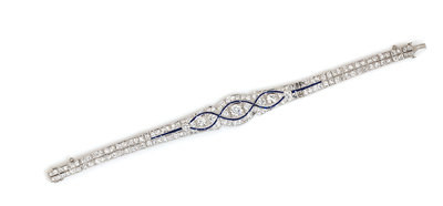 An Art Deco Platinum, Diamond, and Synthetic Sapphire Bracelet,