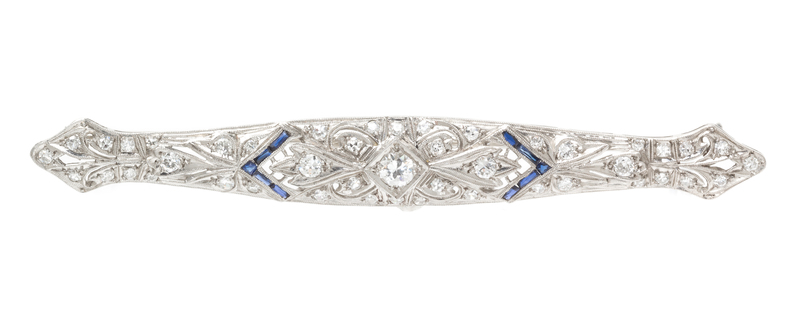 A Platinum, Diamond and Synthetic Sapphire Bar Brooch,