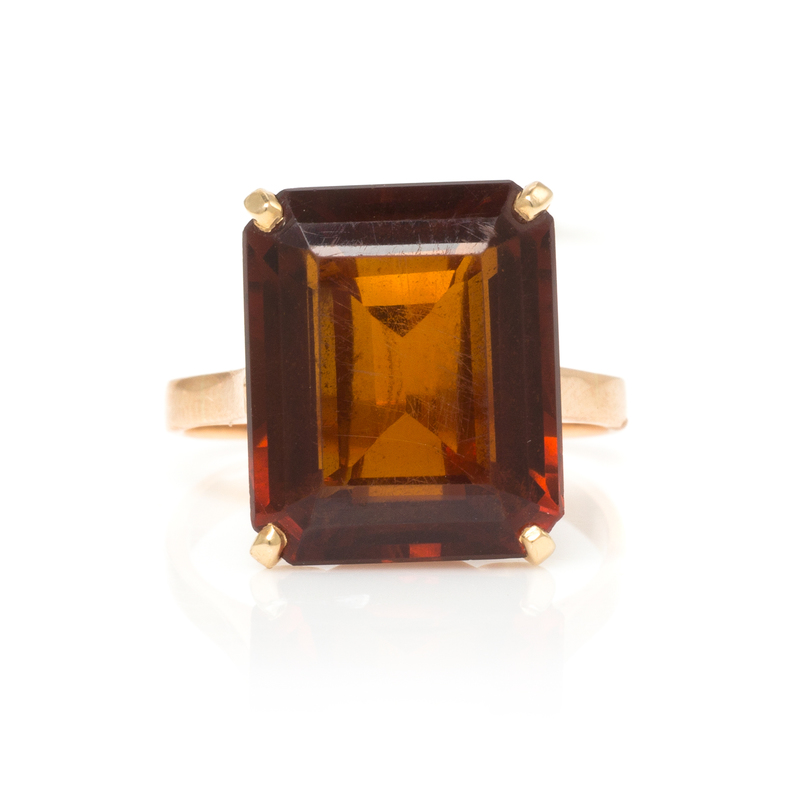 A Retro Rose Gold and Citrine Ring,
