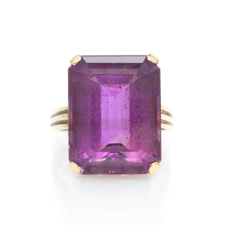A Retro 14 Karat Yellow Gold and Amethyst Ring,