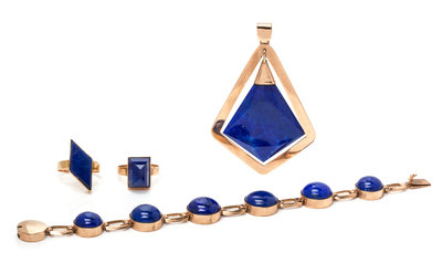 A Collection of Rose Gold and Lapis Lazuli Jewelry,