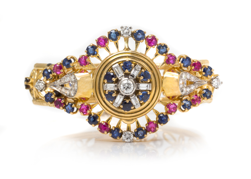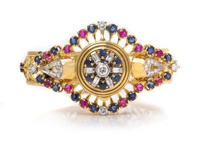 An 18 Karat Yellow Gold, Diamond, Sapphire and Ruby Surprise Wristwatch,
