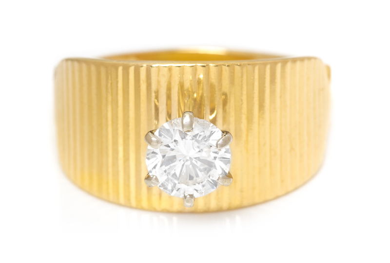 A 14 Karat Yellow Gold and Diamond Solitaire Ring,