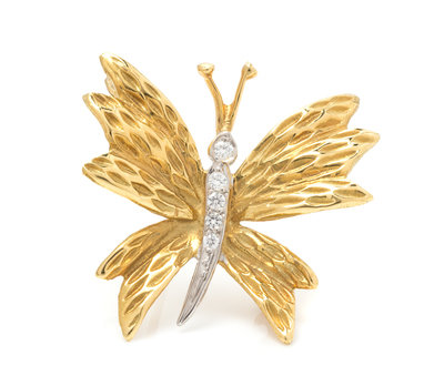 An 18 Karat Yellow Gold and Diamond Butterfly Brooch, Tiffany & Co.,