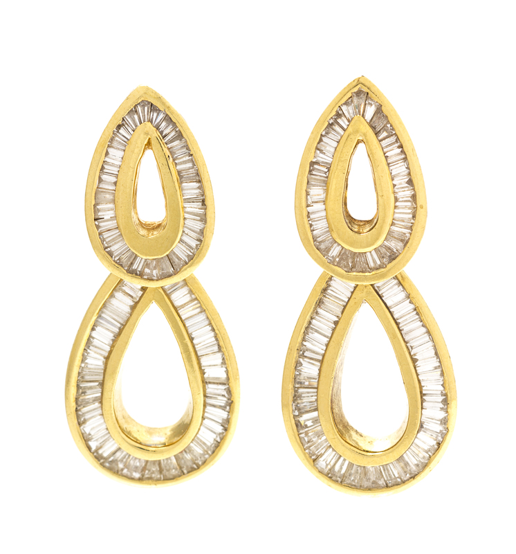 containing 124 baguette cut diamonds weighing approximately 1.86 carats total. Stamp: 18K EMJ.