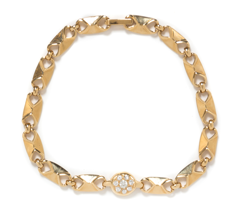 A 14 Karat Yellow Gold and Diamond Necklace,