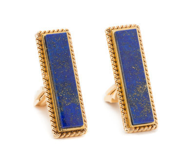 A Pair of 18 Karat Yellow Gold and Lapis Lazuli Cufflinks,