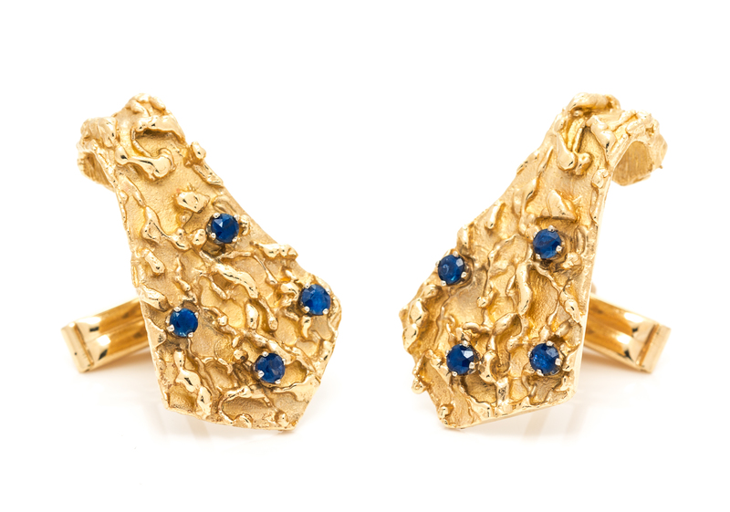 A Pair of 14 Karat Yellow Gold and Sapphire Cufflinks,