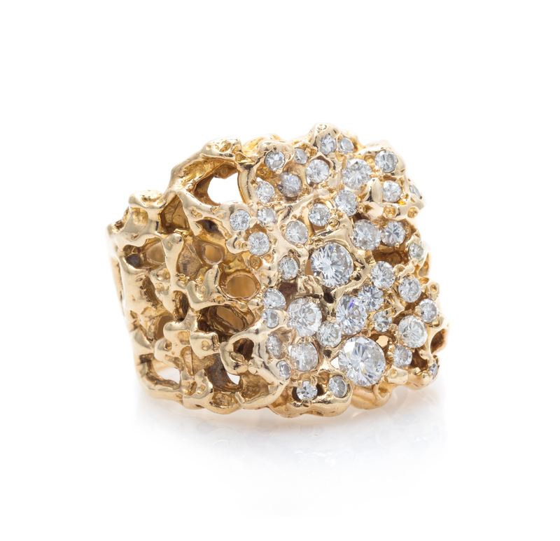 A 14 Karat Gold and Diamond Ring,