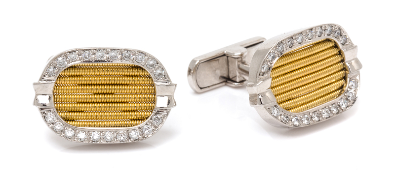A Pair of 18 Karat Bicolor Gold and Diamond Cufflinks, Simon G.,