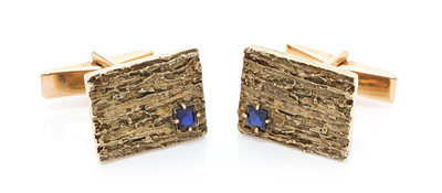 A Pair of 14 Karat Yellow Gold and Synthetic Sapphire Cufflinks,
