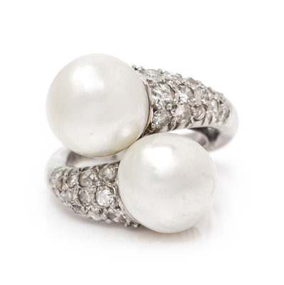 A Platinum, Pearl and Diamond Bypass Ring,
