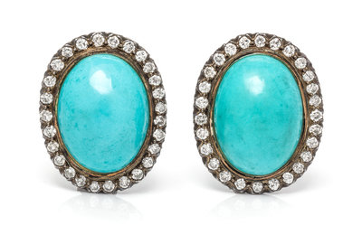 A Pair of Turquoise and Diamond Earclips,