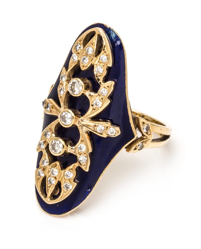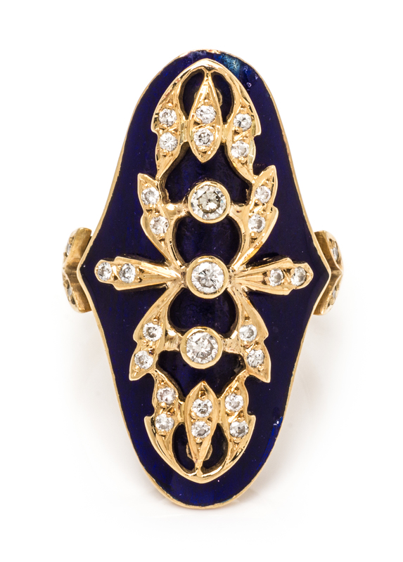 An 18 Karat Yellow Gold, Diamond and Enamel Ring,