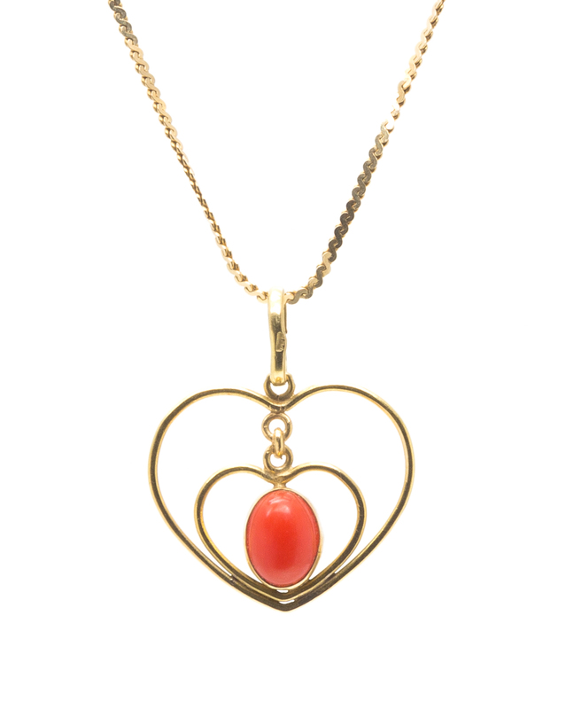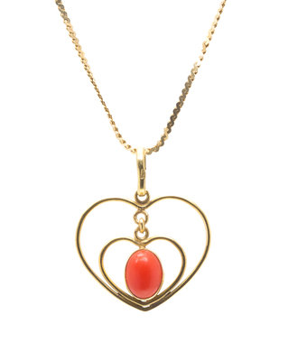 A 14 Karat Yellow Gold and Coral Heart Motif Necklace,