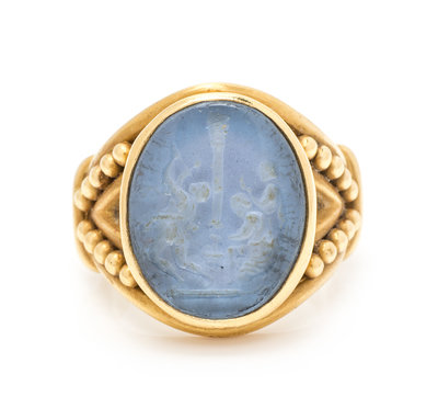 An 18 Karat Yellow Gold and Glass Intaglio Ring, Elizabeth Locke,
