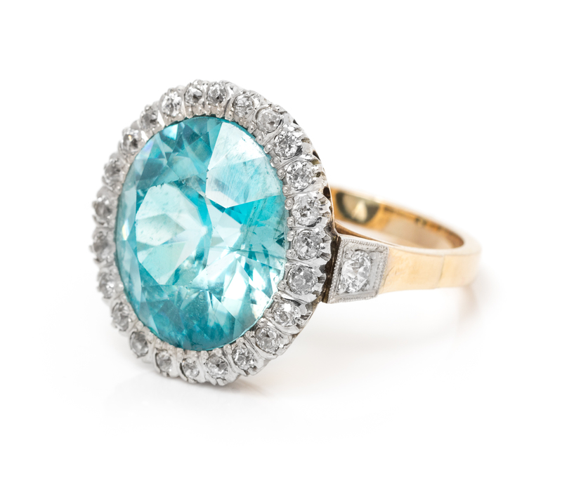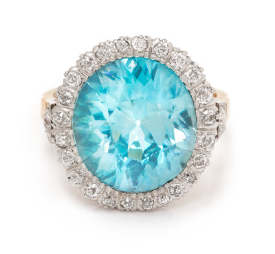 An Edwardian Platinum Topped Gold, Blue Zircon and Diamond Ring,