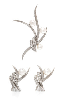A 14 Karat White Gold, Pearl and Diamond Demi Parure,