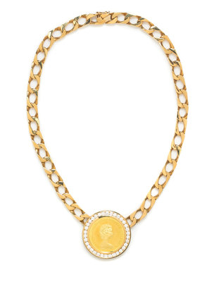 An 18 Karat Yellow Gold, Canada $100 1977 Coin and Diamond Necklace,