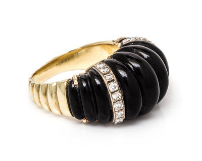 A Yellow Gold, Onyx and Diamond Ring,