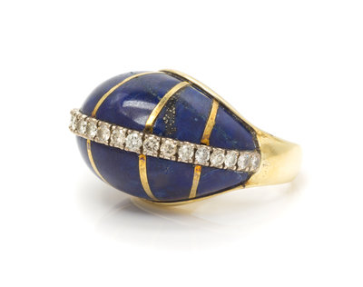 A Yellow Gold, Lapis Lazuli and Diamond Bombe Ring,