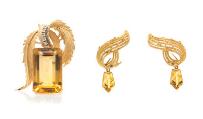 A 14 Karat Yellow Gold and Citrine Demi Parure,