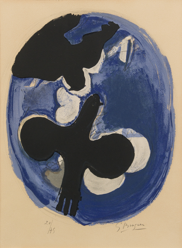 Deux oiseaux sur fond bleu, 1955