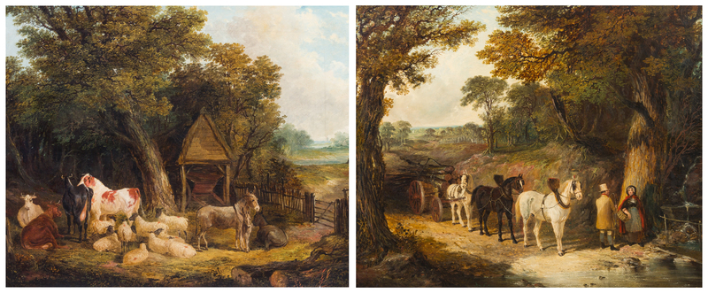 The Farmyard and The Timber Wagon, 1840 (a pair of works)