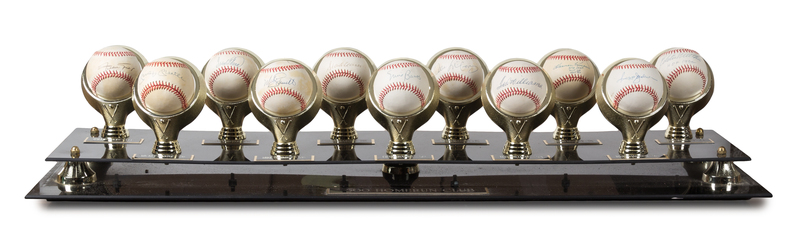 comprising autographed baseballs from: Hank Aaron, Ernie Banks, Harmon Killebrew, Reggie Jackson, Mickey Mantle, Eddie Matthews, Willie McCovey, Willie Mays, Frank Robinson, Mike Schmidt and Ted Williams.
