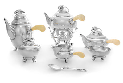 Blossom pattern, comprising a water kettle on stand, a teapot, a coffee pot, a creamer, a sugar, a waste bowl and a sugar scoop.