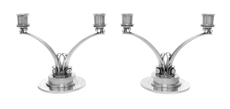 A Pair of Danish Silver Two-Light Candelabra