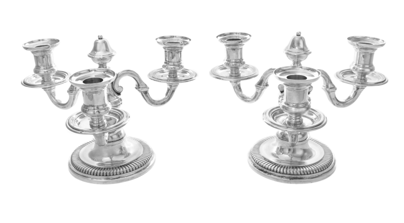 A Pair of French Silver Three-Light Candelabra