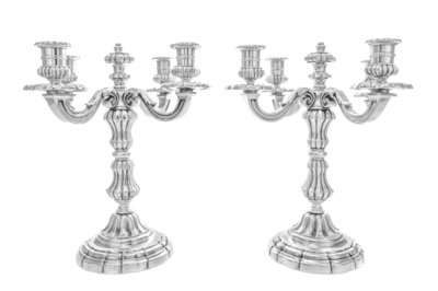 A Pair of French Silver-Plate Four-Light Candelabra