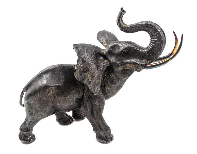 realistically modeled to depict an elephant with inset sapphire eyes.
