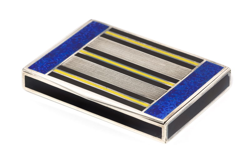 A French Art Deco Silver and Enamel Cigarette Case