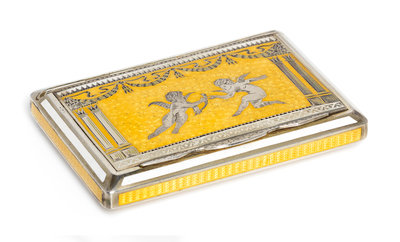 the lid depicting putti, columns and festoons, the underside with guilloche enamel.