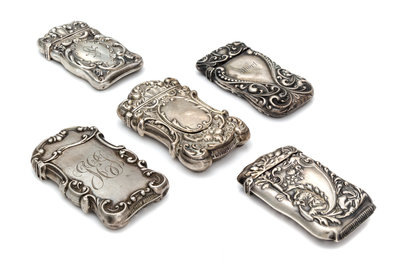 each case worked to show C-scroll and foliate motifs centered by an engraved cartouche.