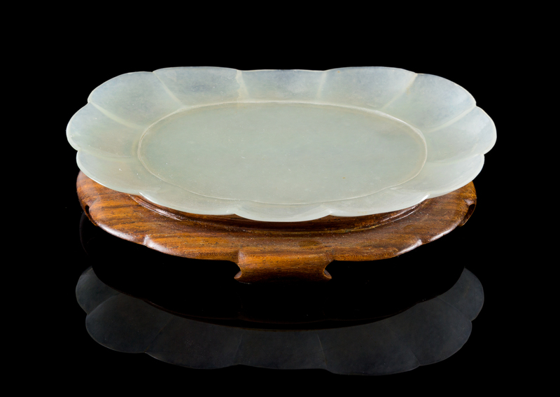 the transparent stone in the form of a blooming chrysanthemum, the rim carved to show a row of radiating petals, supported on a fitted floriform hardwood stand.***LOST BOOKED TO L&D @ $137 TAH 3/29/2017***