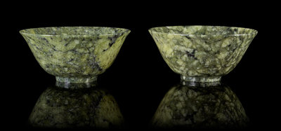A Small Pair of Spinach Jade Bowls