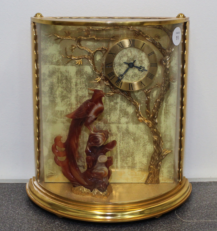 A Chinese Brass and Carved Hardstone Mantel Clock.