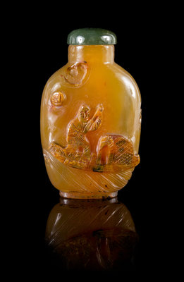 A Carved Shadow Agate Snuff Bottle