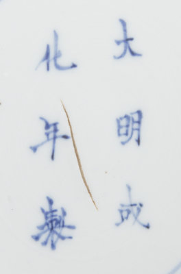 the body decorated with four rectangular panels enclosing birds perched on flowering and fruiting branches below two reserves showing flowers to the neck, all against a blue ground with gilt decoration, the underside bearing an apocryphal Chenghua six-character mark in underglaze blue within a double ring.
