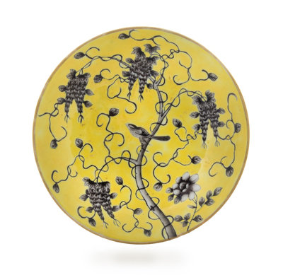 A Grisaille Decorated Yellow Ground Porcelain Plate