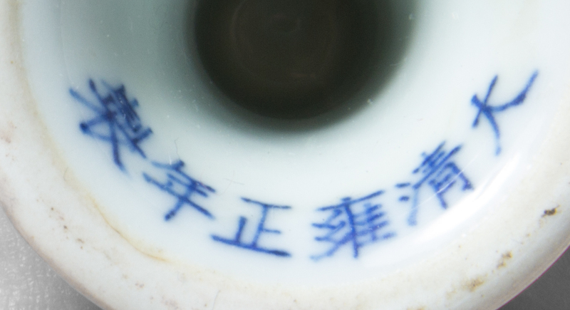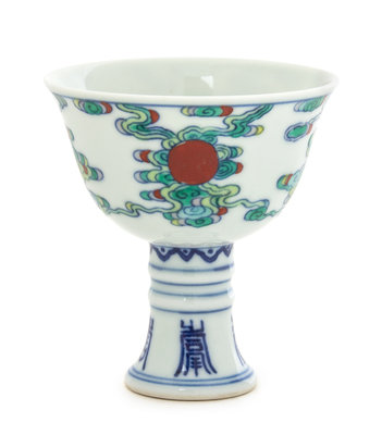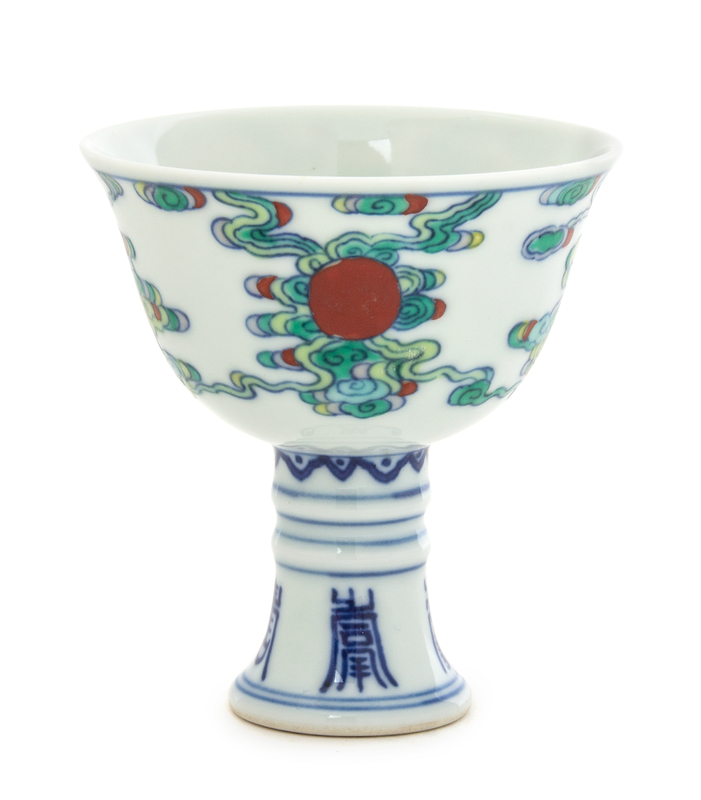decorated with red suns among cloud banks, bearing an apocryphal Yongzheng six-character mark to the underside.