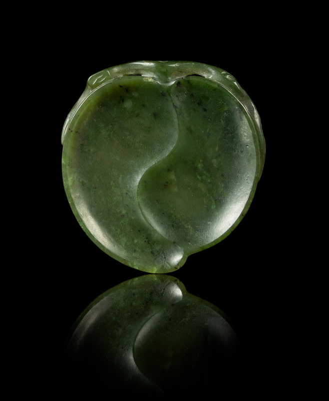 A Small Spinach Jade Peach-Form Brush Rest